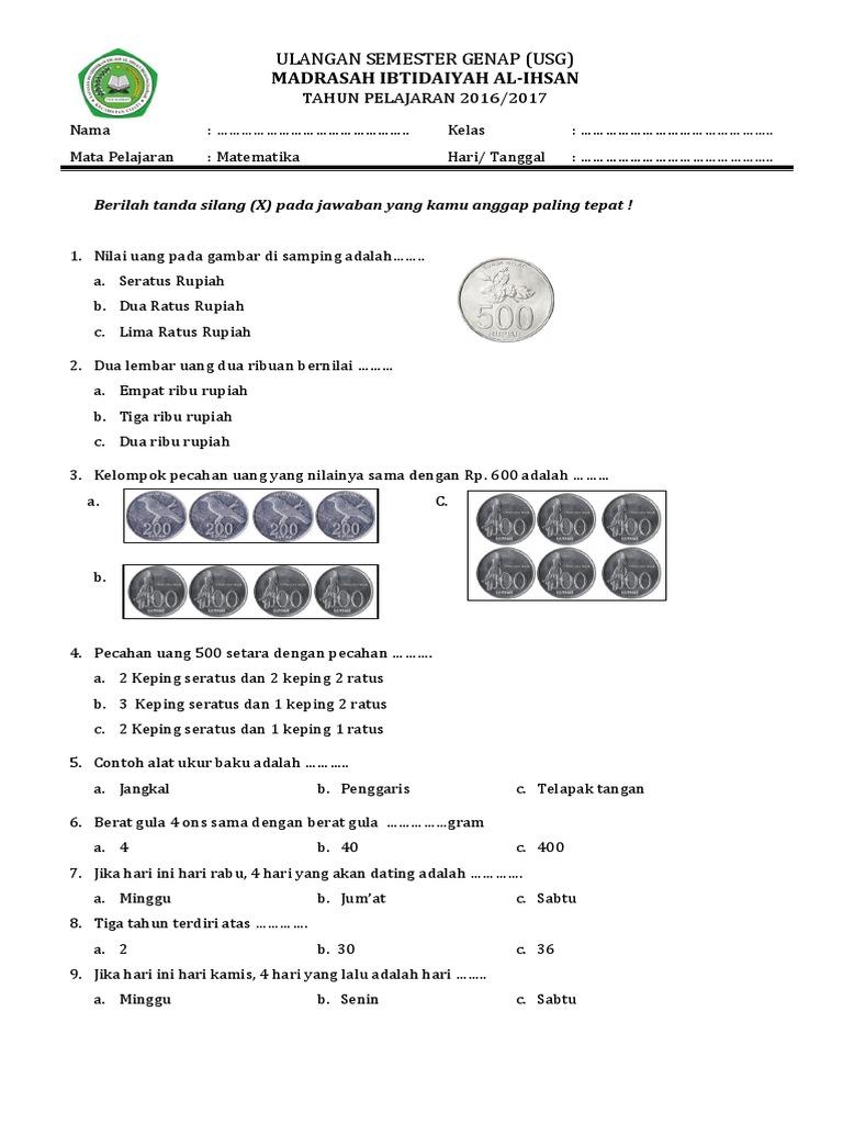 Soal Cerita Mata Uang Kelas 2 Sd / Contoh Soal Usg Kelas 2 Sd Mi - Contoh soal mata uang kelas 2 sd.